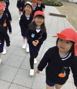 友だちと並んで歩いたり、先生の話を聞いて安全に歩いたりする中で、自然とルールを守ることができました。