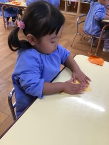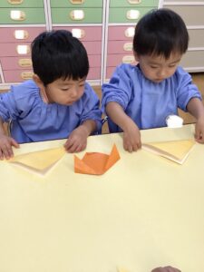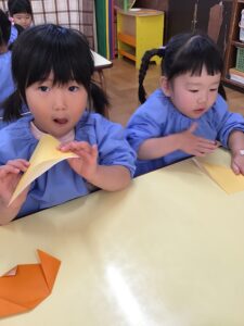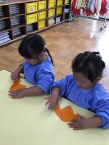 折り紙遊びしたよ🐶💛満3歳児クラス🌷アンファンクラス