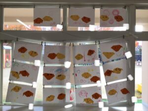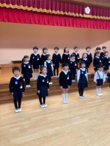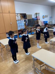 英語では、歌の指示(riding/reading/singing等)に合わせて体を動かしました。