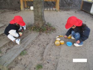 園庭に落ちている木の実をお友だちと一緒に拾って集めたり…楽しかったね💛