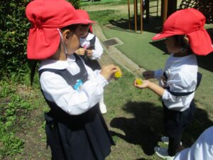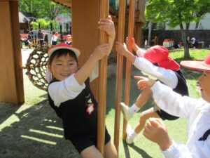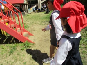 昨年度同じクラスだったお友だちとも、新しいクラスのお友だちとも声をかけあって遊んでいました。