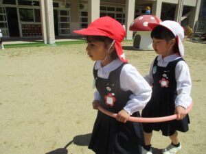 その後は年長組みんなで園庭遊びを楽しみました。