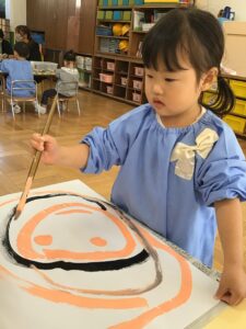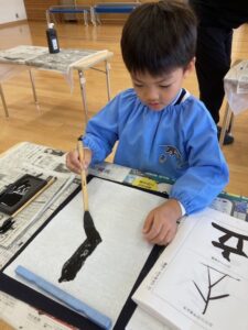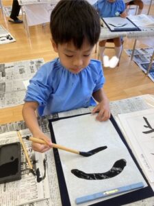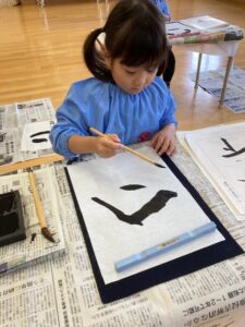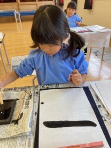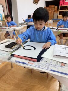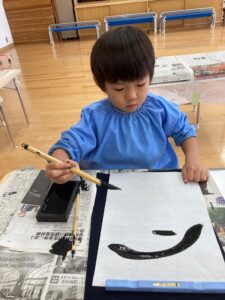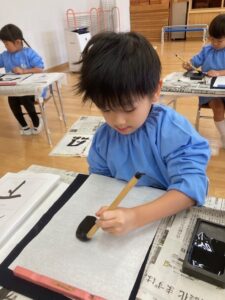 お遊戯室が墨の匂いでいっぱいになることも大好きです。