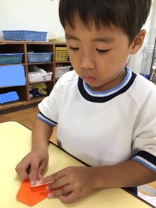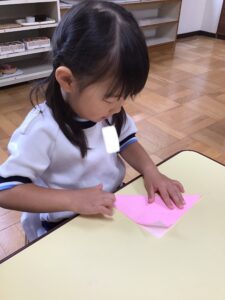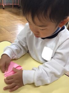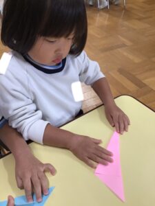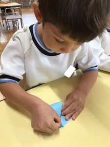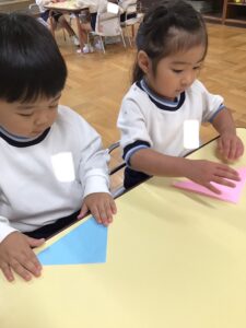 端と端をそろえられるようになってきて「みて!きれいに折れた!」と嬉しそう💛