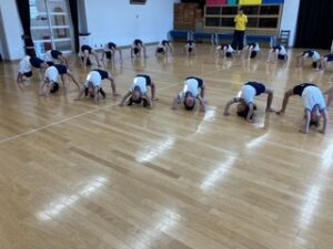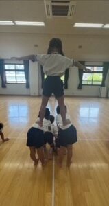 最近は、音楽に合わせて集団演技の技に取り組んでいます。