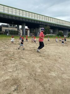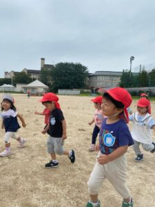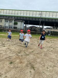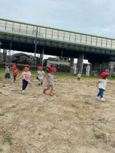 みんなで追いかけっこや「よーいどん!」とかけっこをして遊びました。