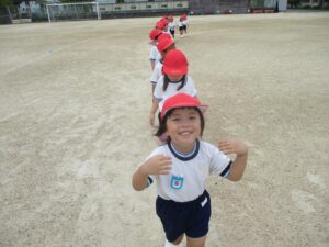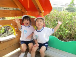 戸外の心地よい風を感じながら、体をいっぱい動かして過ごしています。お家ではしっかりと休息をとり、明日も元気に登園してくださいね。待っています!
