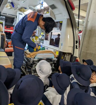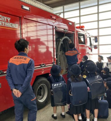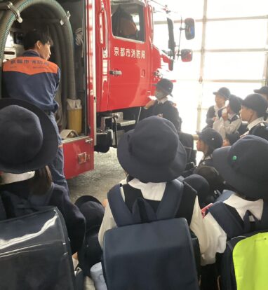 国語の「じどう車くらべ」という説明文の学習の一環として、伏見消防署へ校外学習に出かけました。