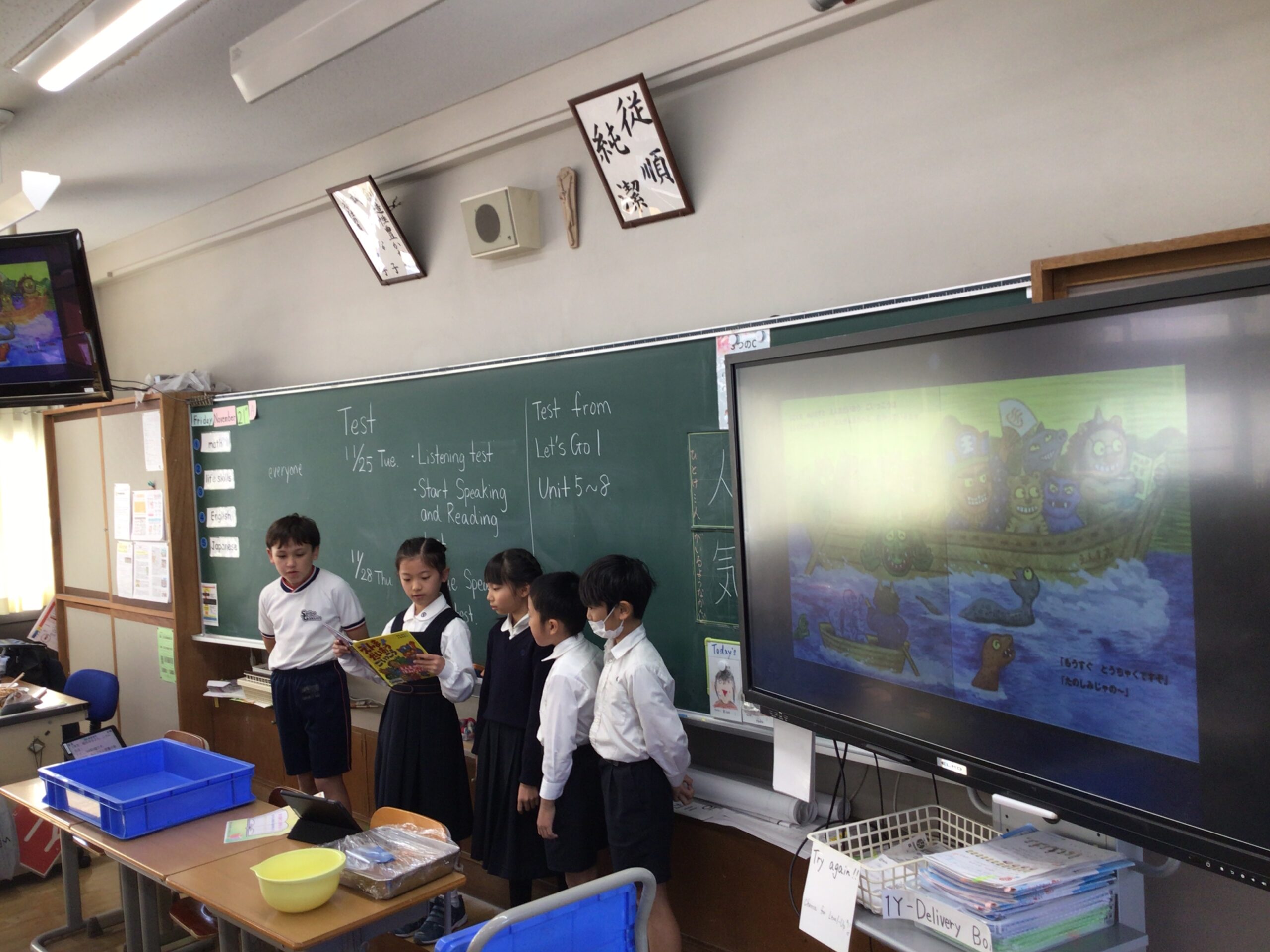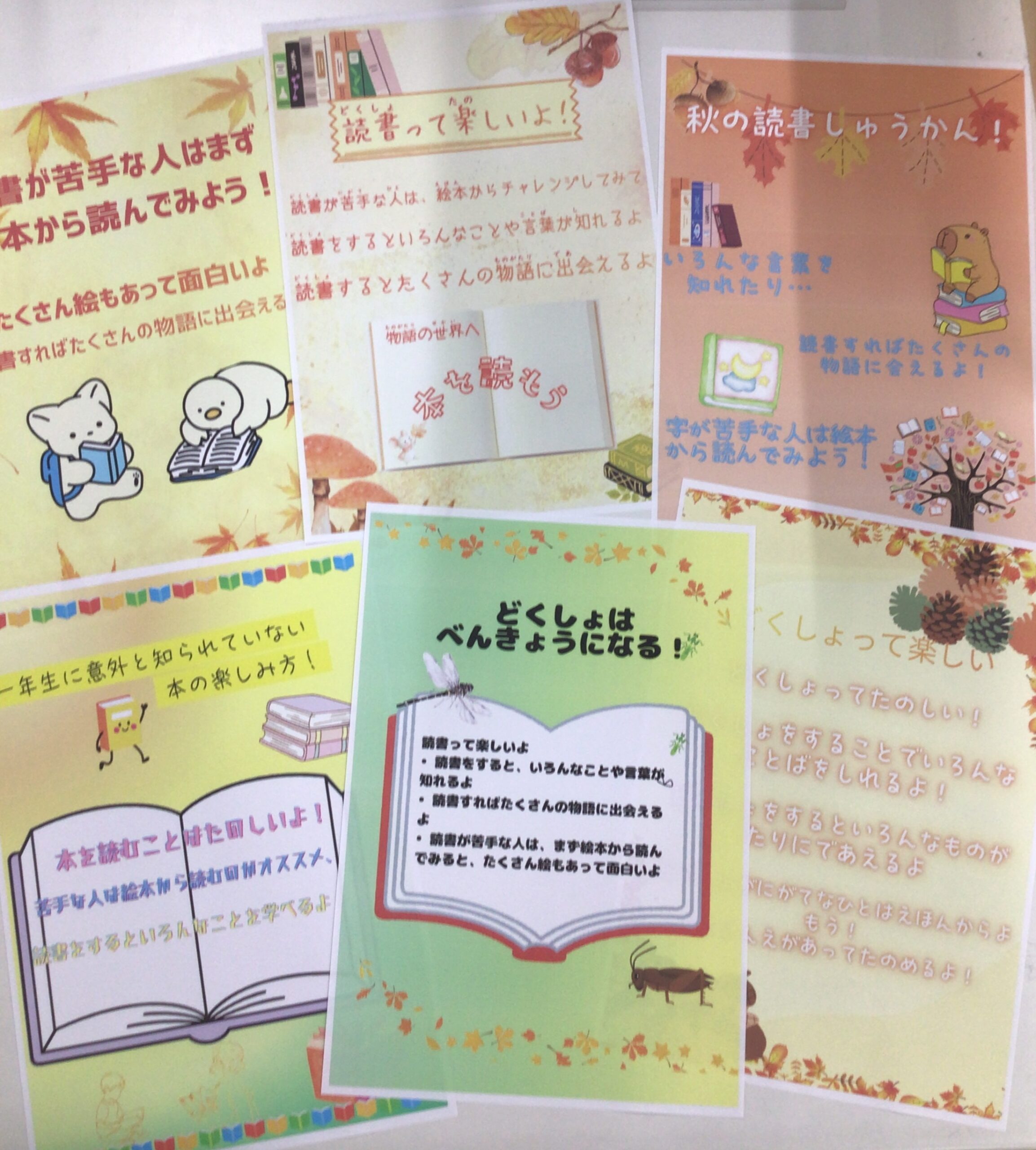 ハロウィンでの1年生に向けたトリックオアトリートの企画から約3週間。今回は1年生に読み聞かせ会を行いました。