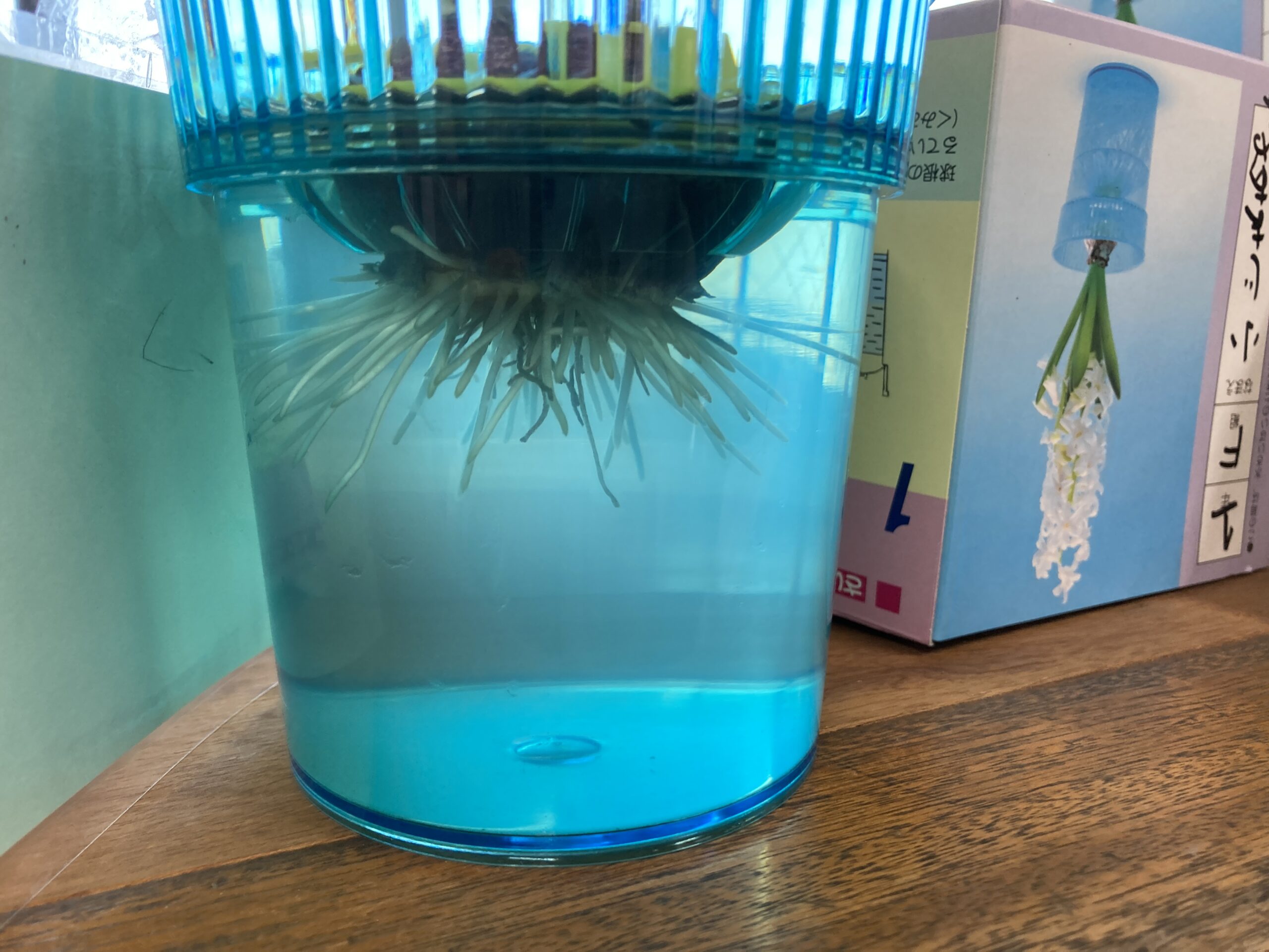 ヒヤシンスは、教室の棚の上に置いています。毎朝水の中の様子を見ては、「昨日より根っこが伸びてる!」と球根の成長を喜ぶ子どもたち。花が咲くまでの数ヶ月間、わくわくした気持ちで過ごせそうです。