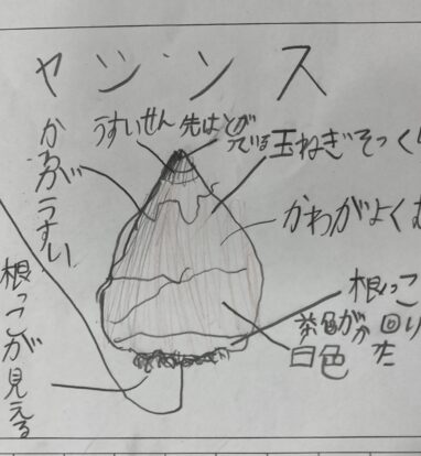 不思議なことがいっぱいです。どこから芽が出て花が咲くのか、どんな色の花が咲くのか予想しながらスケッチしました。
