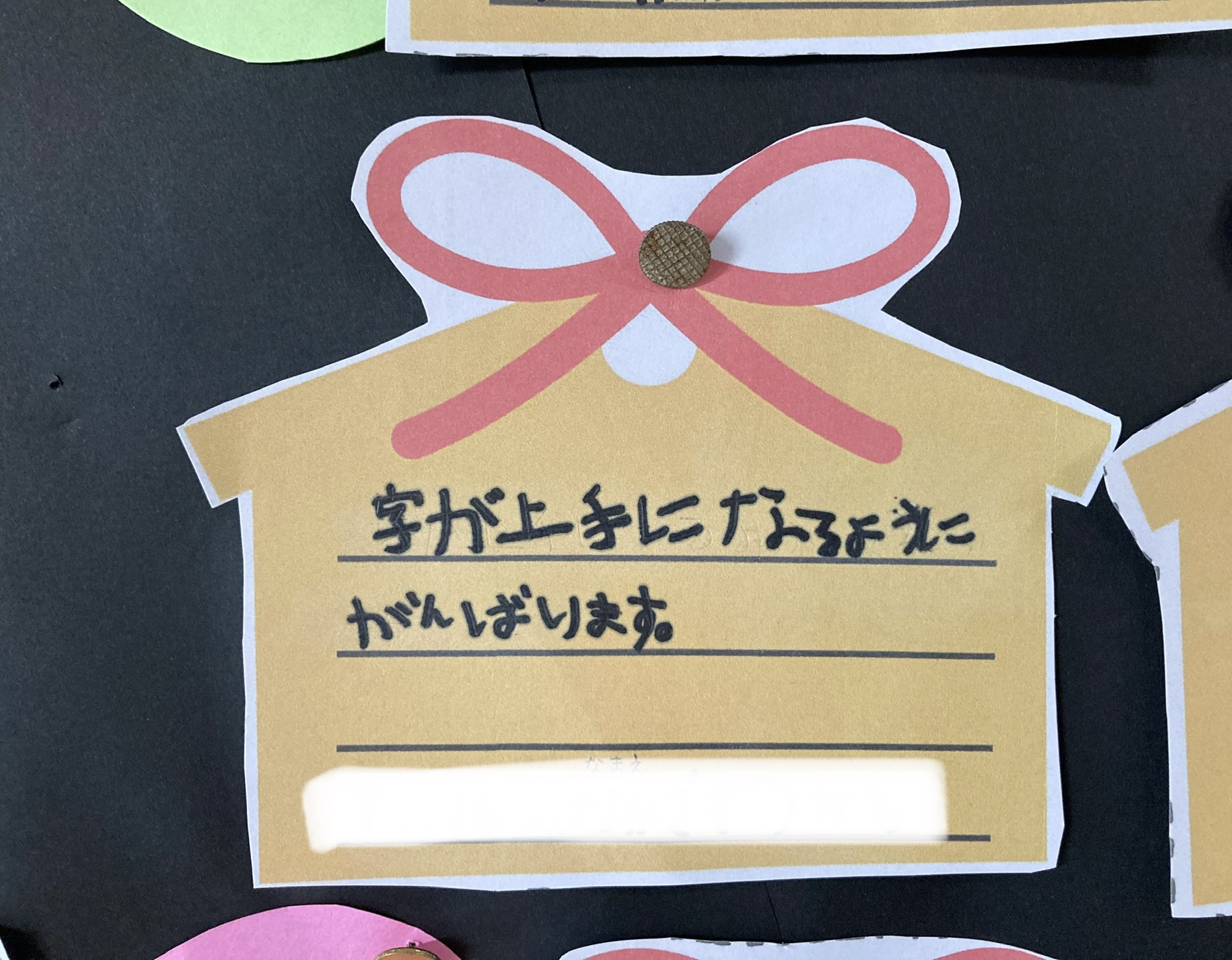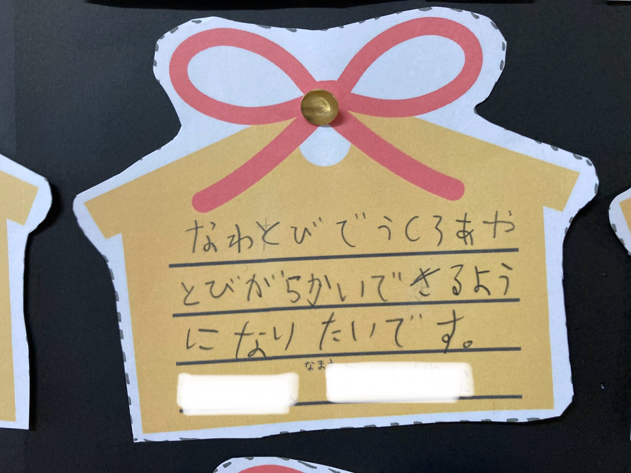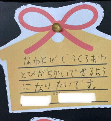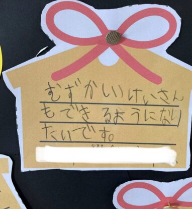 「なわとびがじょうずになりますように」「かん字けんていをまんてんごうかくできますように」など、一人ひとり目標を書きました。