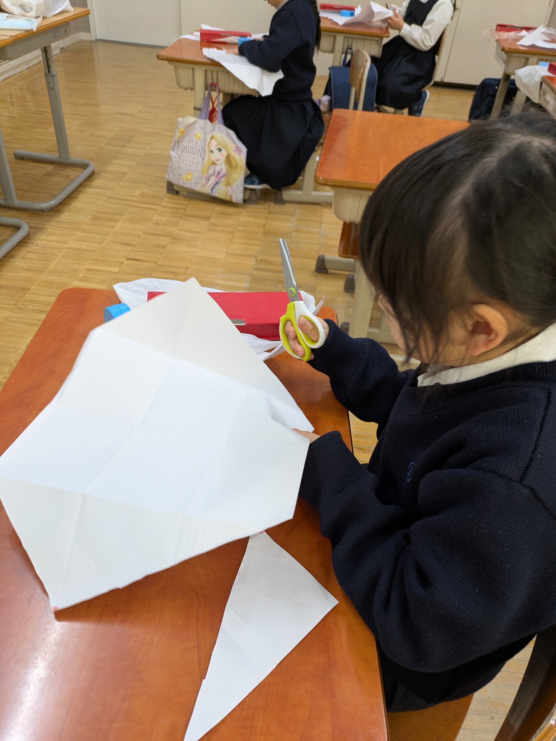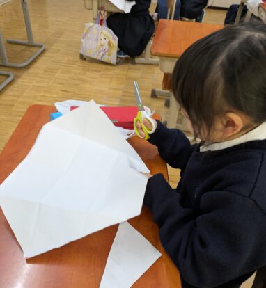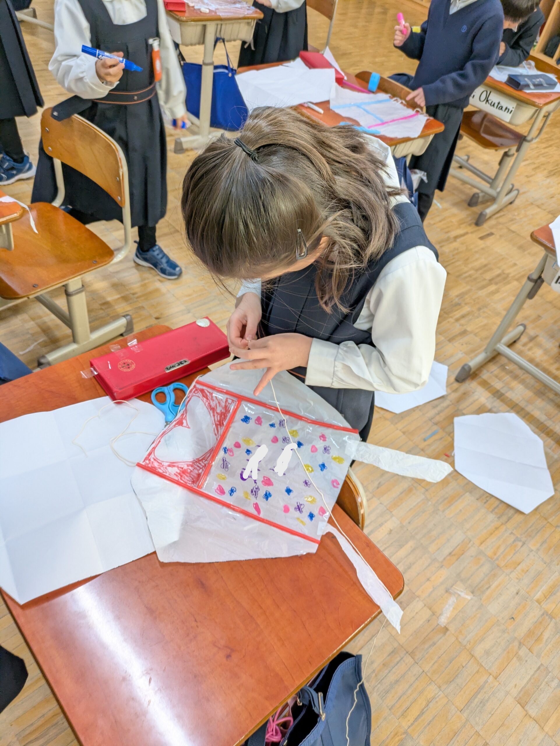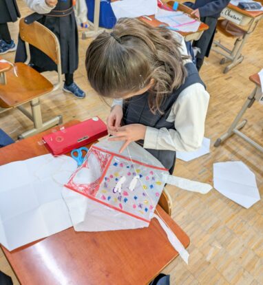 漢字の学習を終えた後は、「正月あそびを体験しよう」と題して、凧作りをしました。