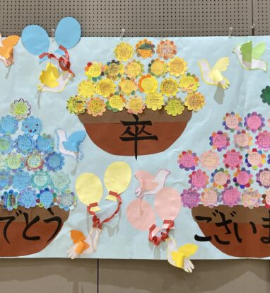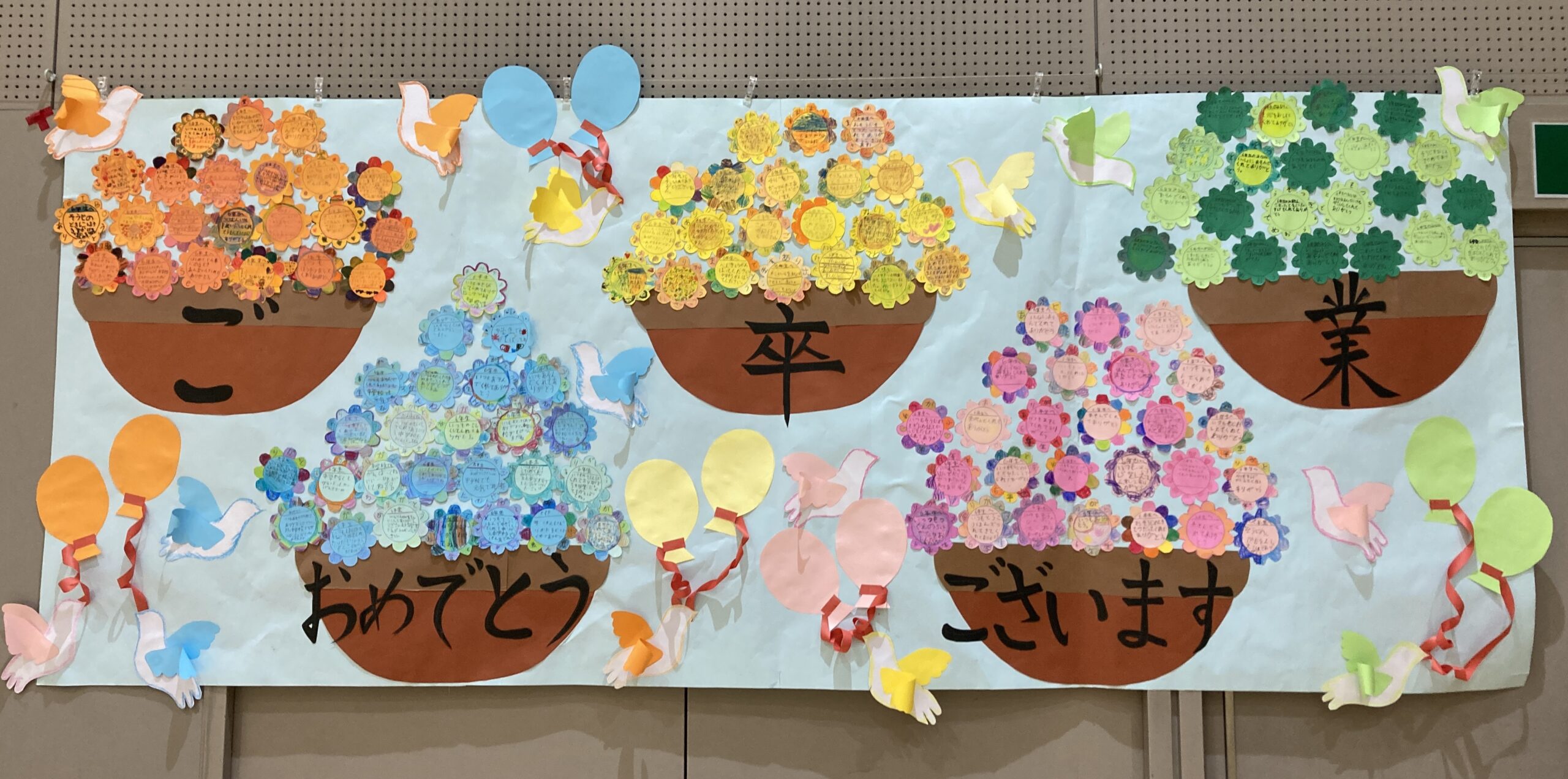 「ごーそつぎょう、おめでとう。ろーくねんせい、ありがとう。」