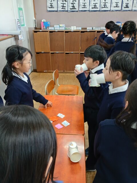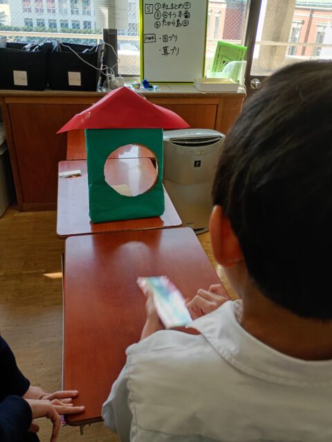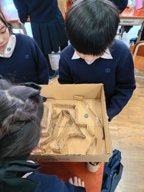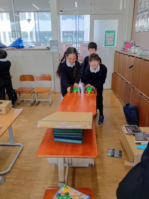 国際クラスの3年生に招待されて理科で学んだことを取り入れたおもちゃで遊ばせてもらいました。