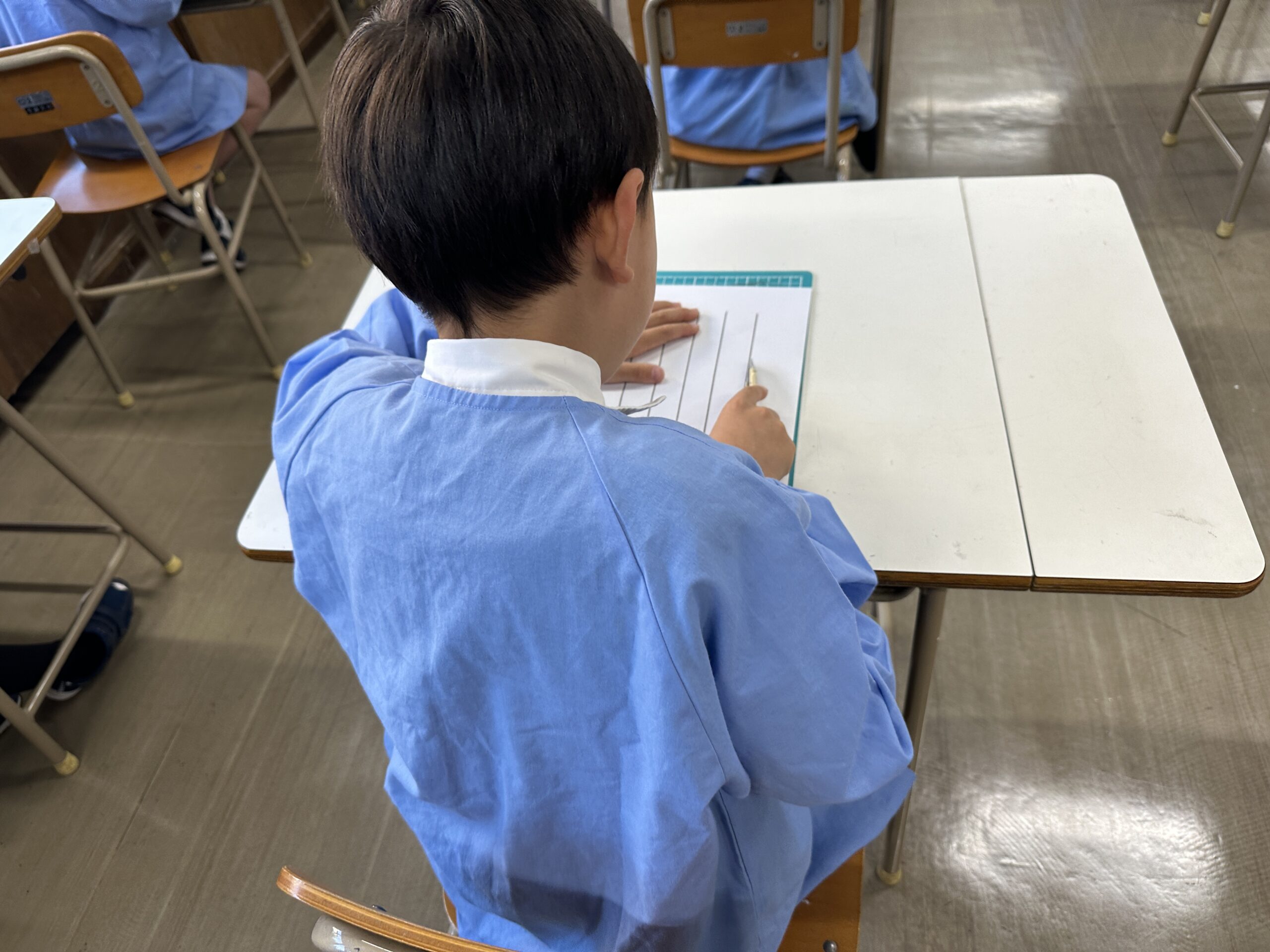 はじめにカッターの持ち方、刃の出す目安を教えていただきました。そして、カッターを持たない手の方はどこの位置に置くのかも教えていただき、いよいよカッターで紙を切る時が来ました。