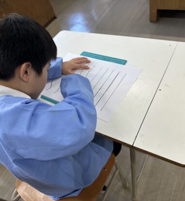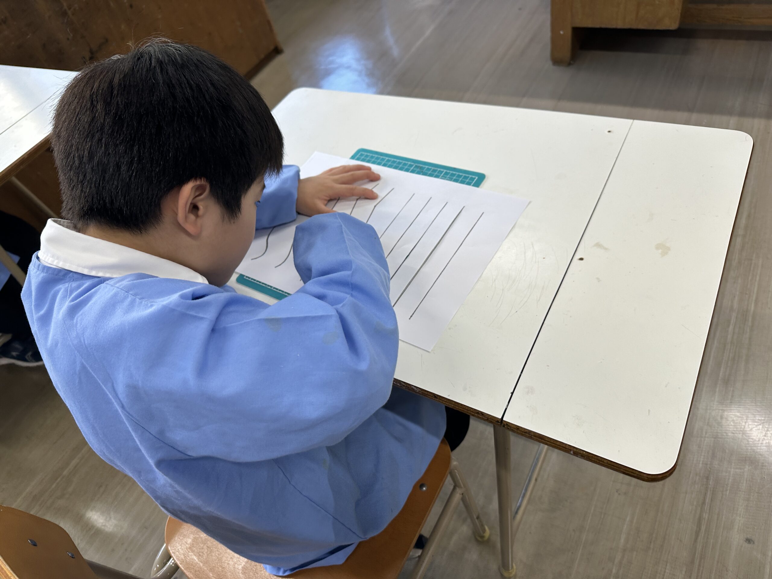 子どもたちはドキドキしながらも、ゆっくりカッターを動かして進めていく姿は真剣そのもの。切り終わったときに、紙を見るととてもきれいに切れているのを見て「すごい!」と喜びの声をあげていました。