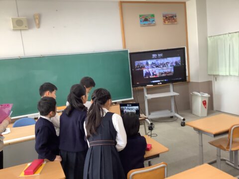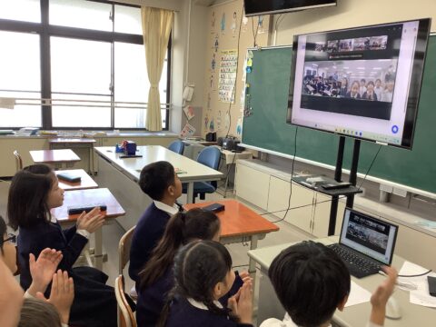 最後に韓国語が堪能な子が韓国語で「みなさんにお会いできてうれしいです。」と話すと、相手校の子どもたちから温かい拍手がおこりました。こうして、あっという間に楽しい交流の時間は過ぎました。来週はどのような交流ができるのか楽しみですね。