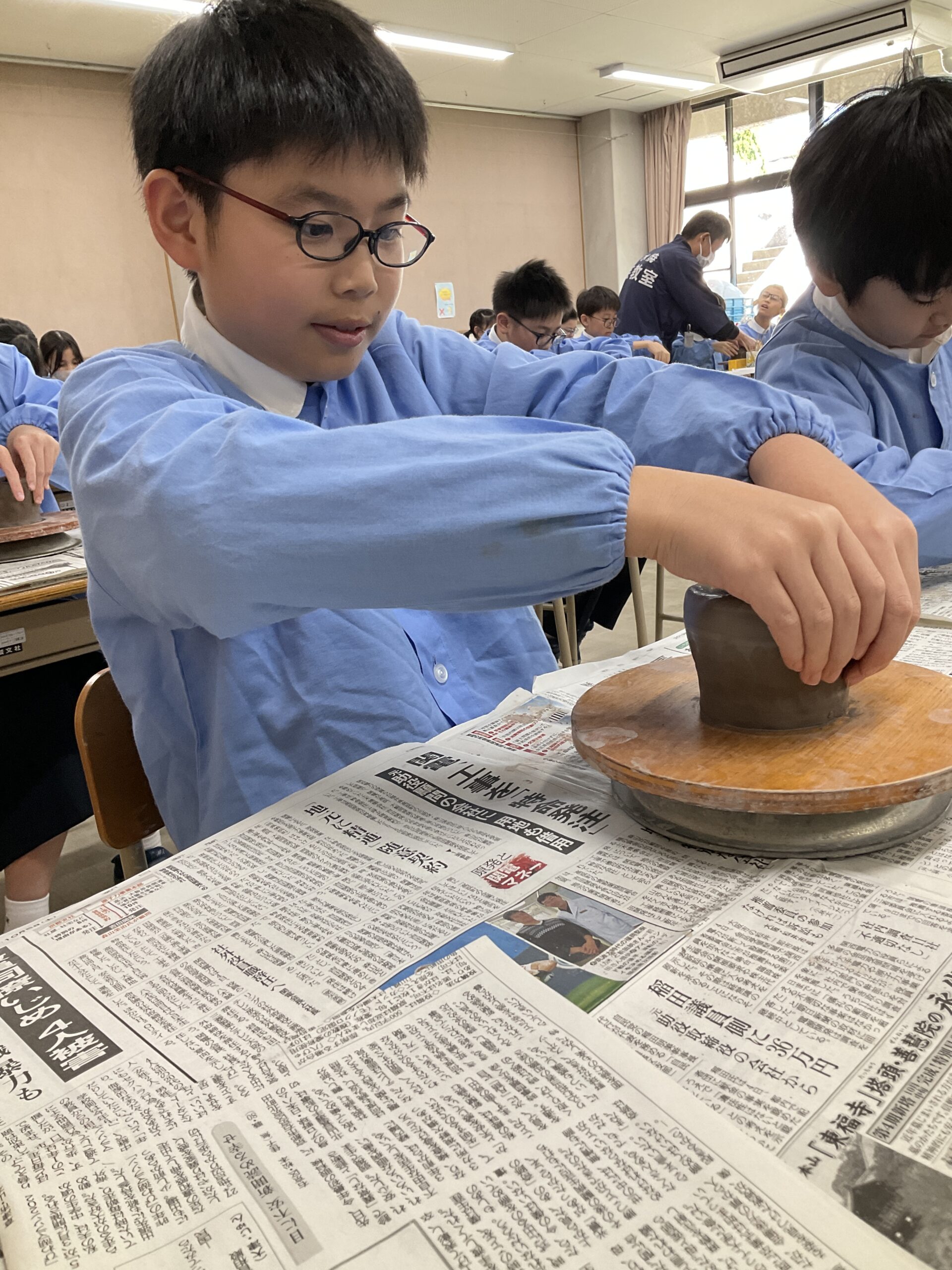 4年生総合フロンティアコースでは、2学期に国語科「未来につなぐ工芸品」と総合的な学習の時間を関連させ、清水焼の陶芸体験を行いました。清水焼の魅力や歴史、作り方を教えてくださったのは森陶器館の皆さまです。