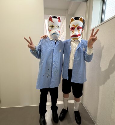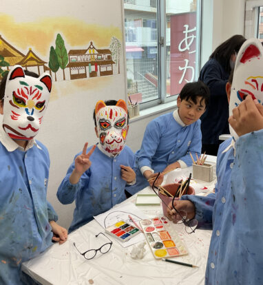 午後からは、伏見稲荷大社近くにある「あかね屋」さんで、きつねのお面作りを