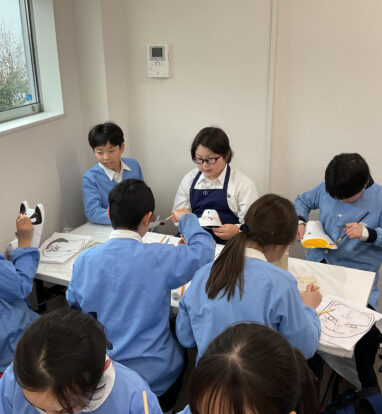 デザインを変更する子、どの子も楽しみながらお面の絵付けをしていました。
