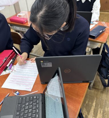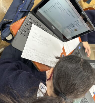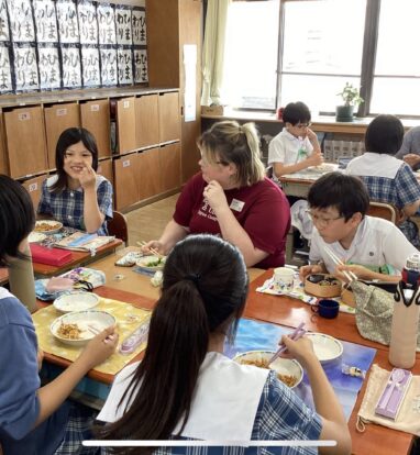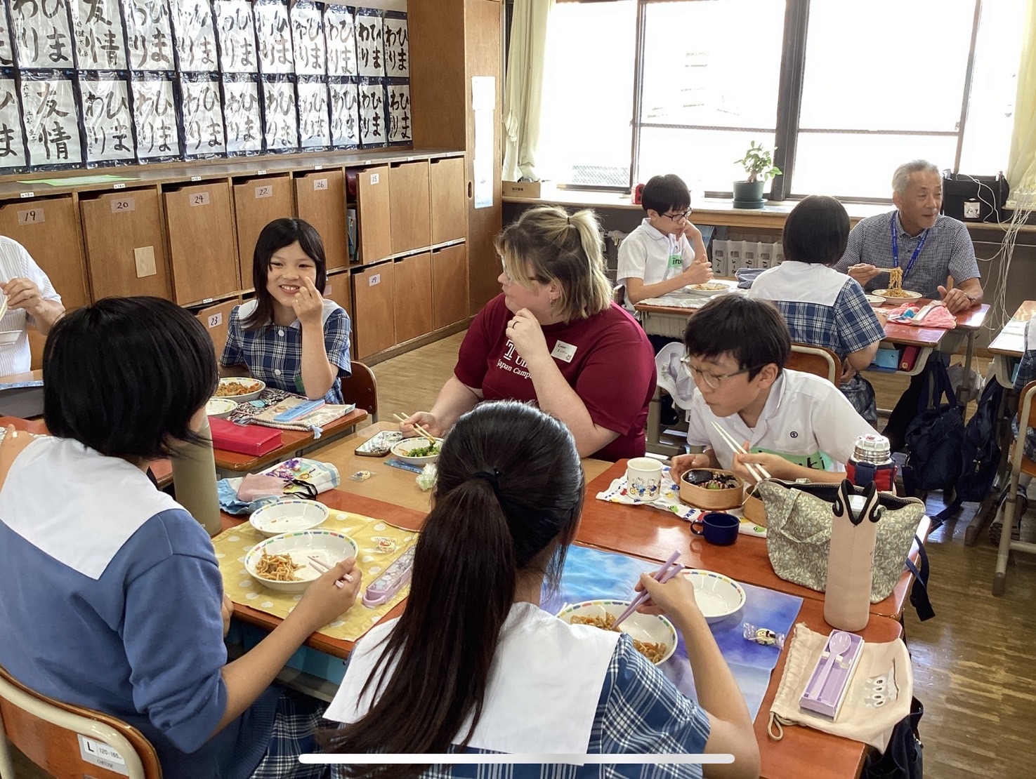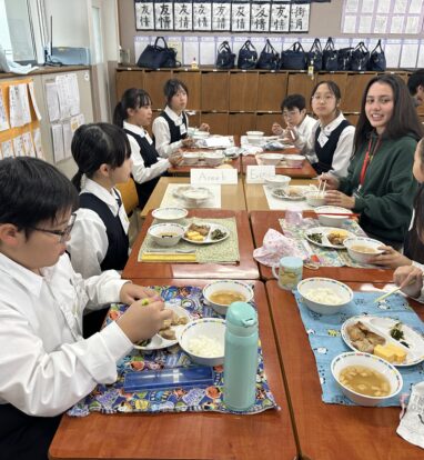 そして、昼食を摂りながら、考えた英語を話したり、質問したりして交流を深めました。