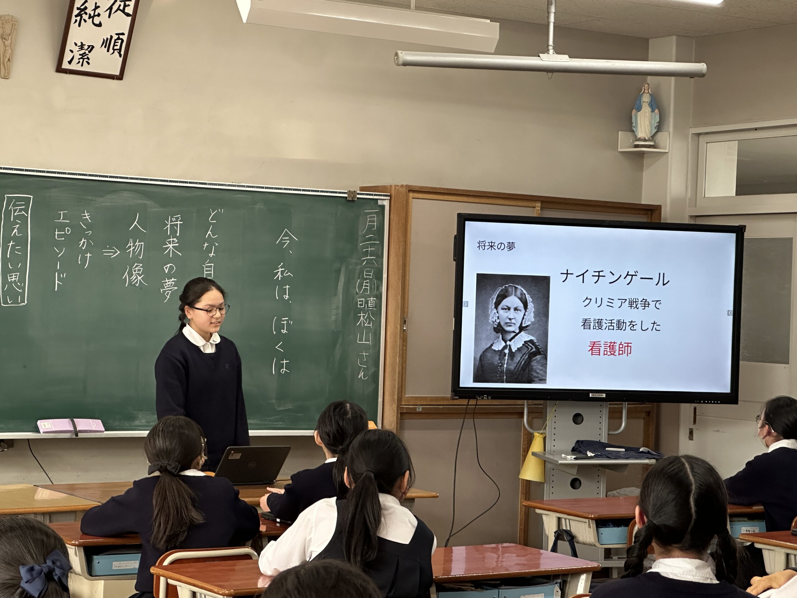 あと少しで小学校を卒業する6年生は、「将来の夢」や「どんな自分になりたいか」を考えています。また、そう思うようになったのは、どんなきっかけがあったのか、どんな人に影響されたのかも考え、スライドにまとめ、スピーチをしました。