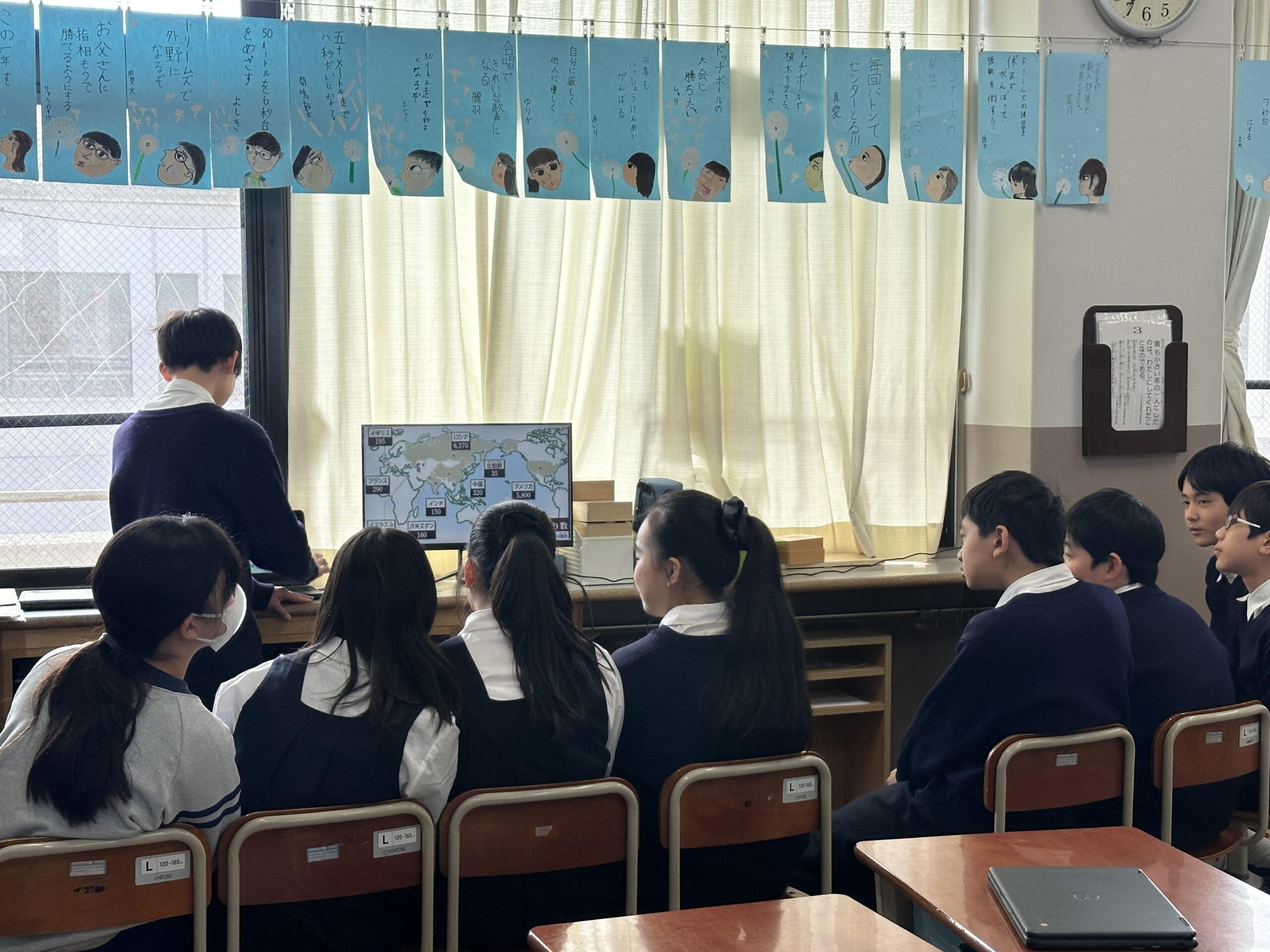 今日は隣のクラスと交流し、発表したり、発表を聞いたりしました。