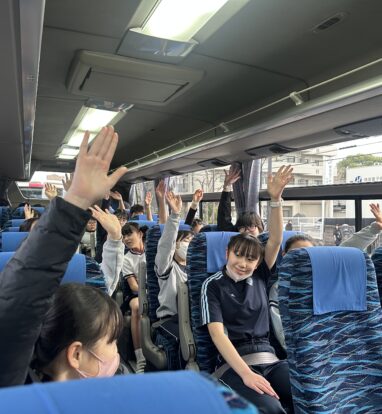 バスに2時間弱乗りましたが、バスの中ではバスレク係の子どもたちがクイズやビンゴなどいろいろな企画を考えてくれてあっという間に着きました。
