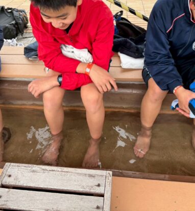お昼はみんなでお弁当を食べ、また時間ぎりぎりまでアトラクションを楽しみました。足湯にみんなで浸かるのもとても良い思い出となりました。