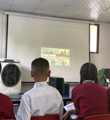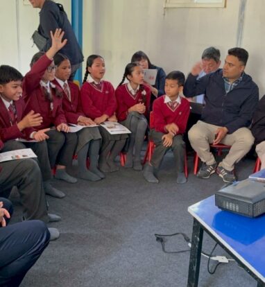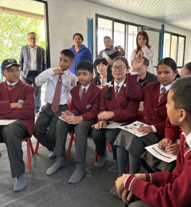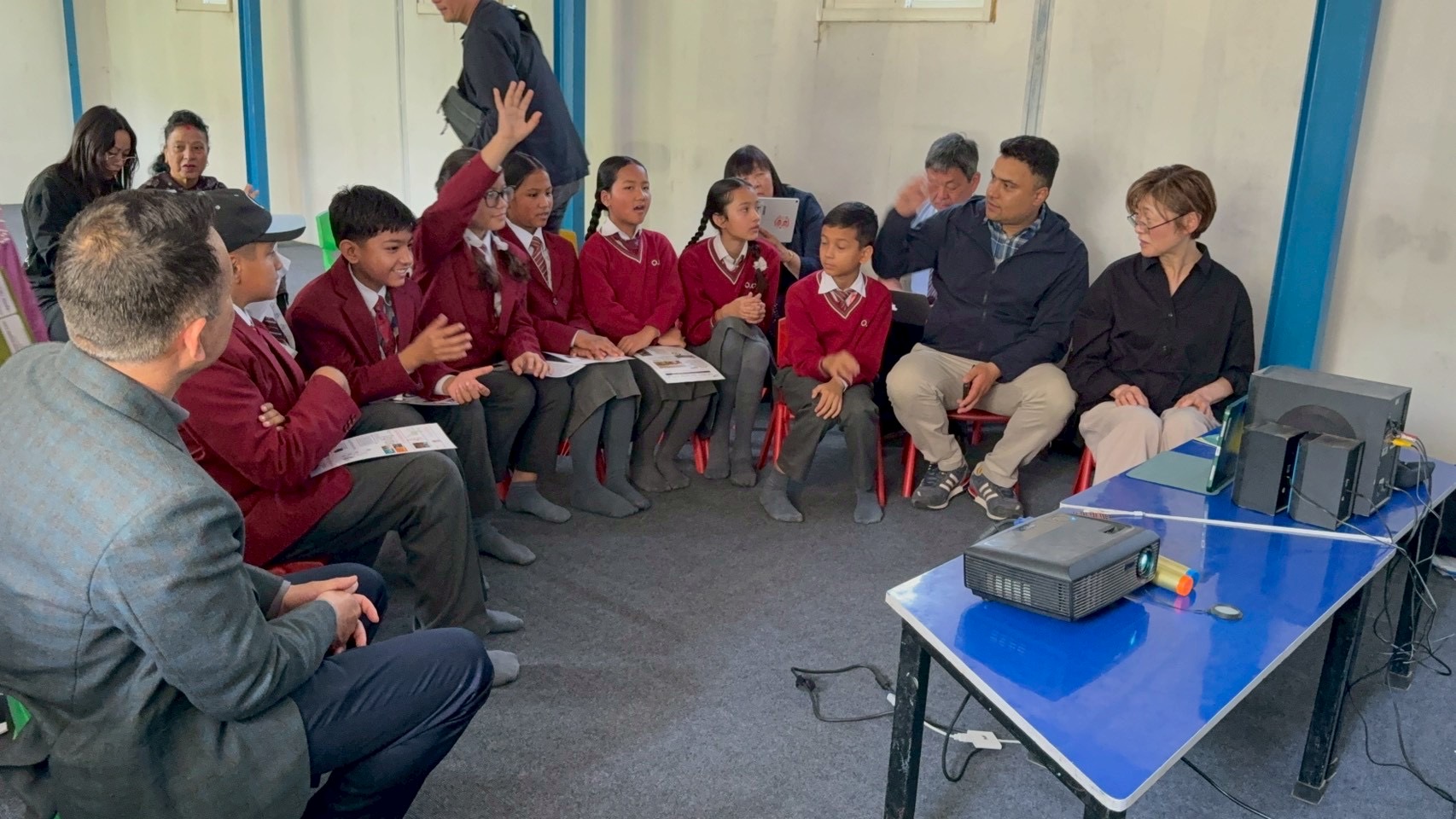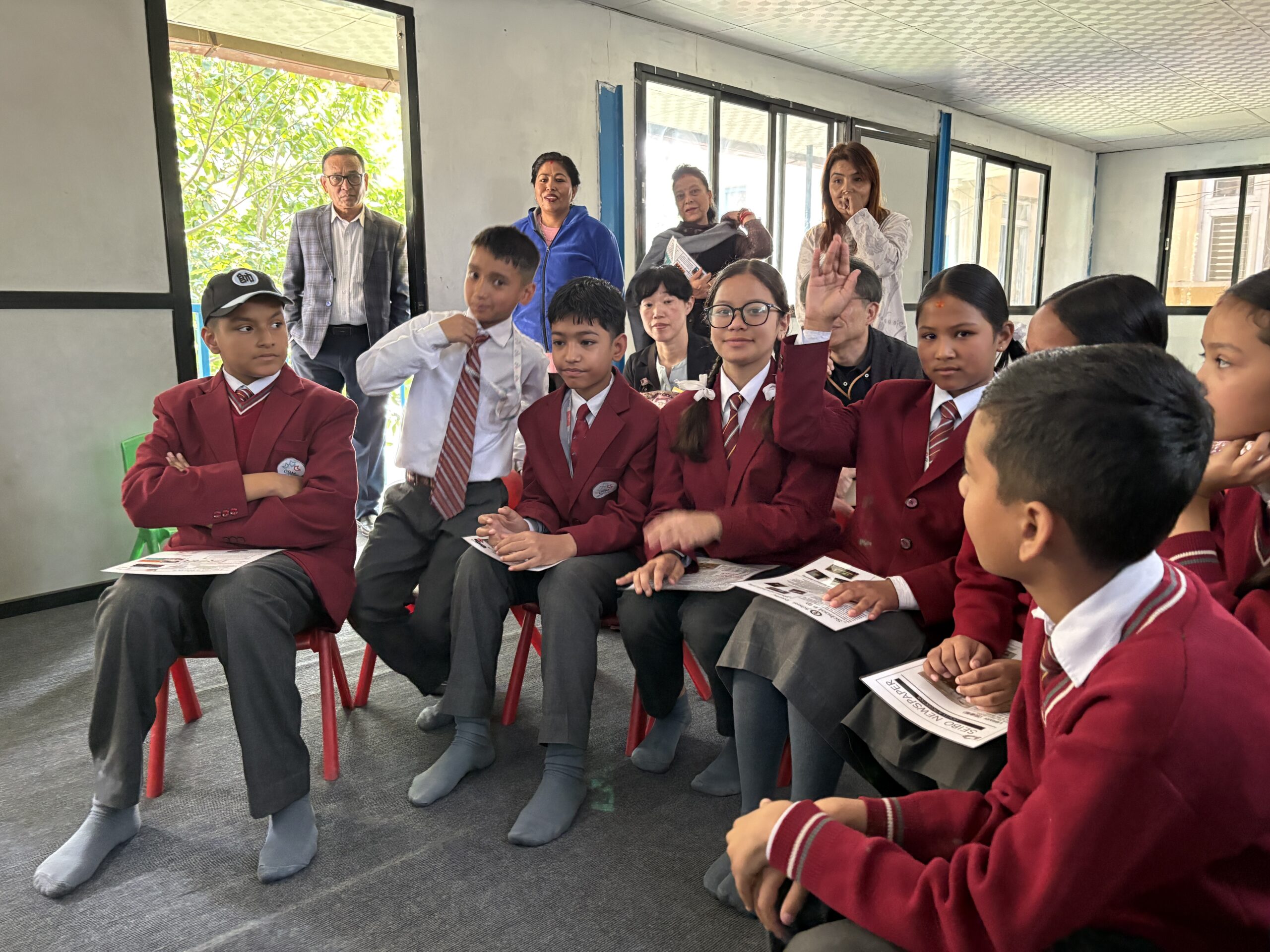 4月から6年生になる子どもたちが、春休みに学校に集まり、ネパールの学校 OM GYAN MANSIR校とオンラインで交流しました!