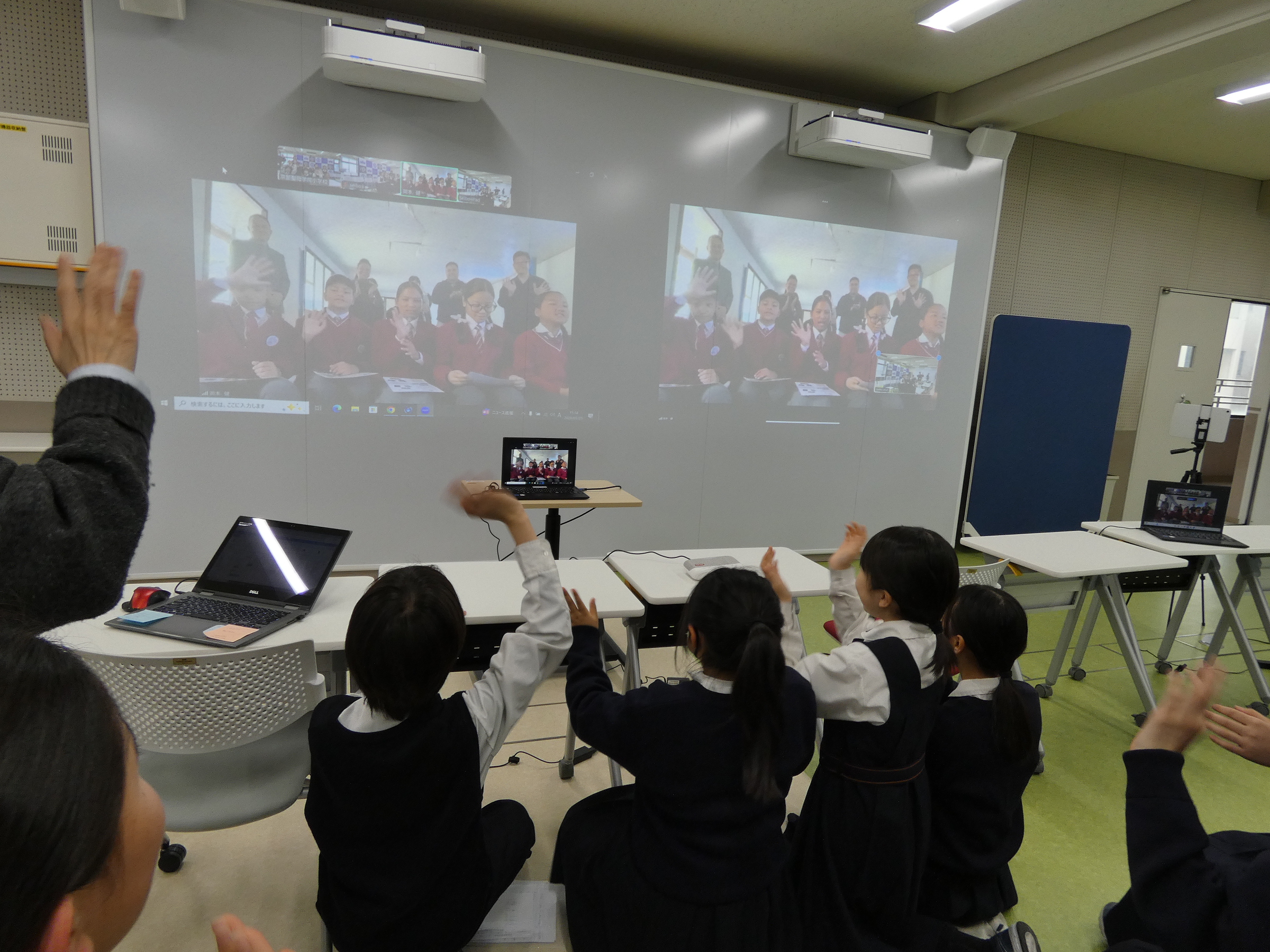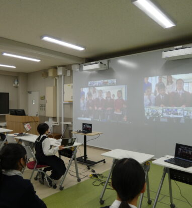 両校とも10名程度が参加し、英語でお話をしました。学校に関する質問をしあったり、食べ物について話したりアニメの話で盛り上がったり・・・。