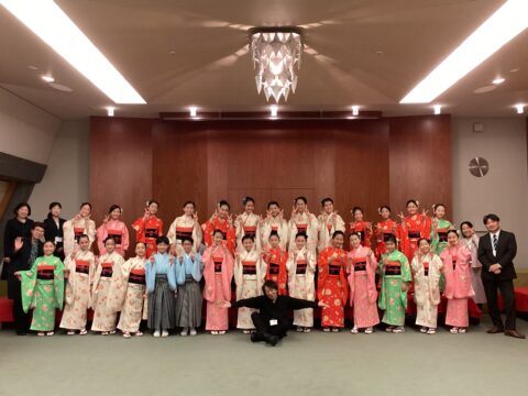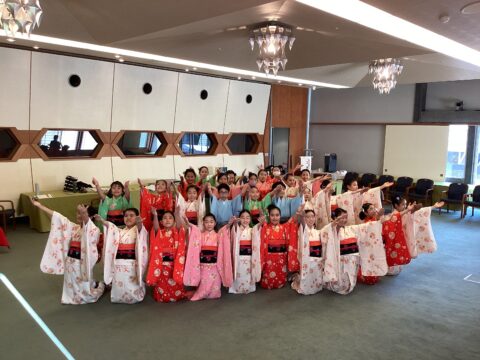 京都賞をデザインした着物に身を包んだ子どもたちの、踊りを交えた美しい歌声が、たくさんの海外からのお客様の集う会場を包みました。