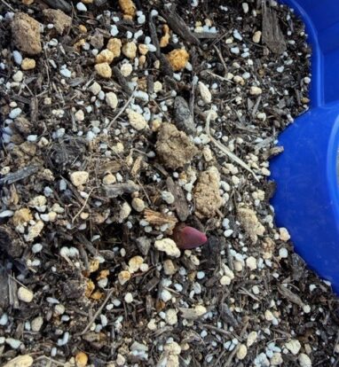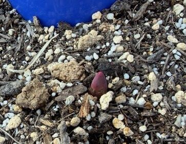 1年生が2学期に植えた球根が、少し芽を出しはじめています。お休み中に、「あれ?これは横向きでは?」と気づいて、植えなおしをしたものも、上に向かって小指の先ほどの芽を出していました。