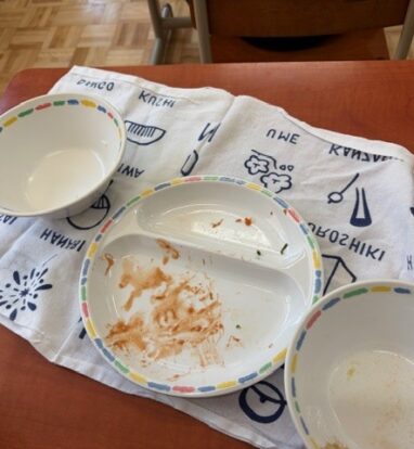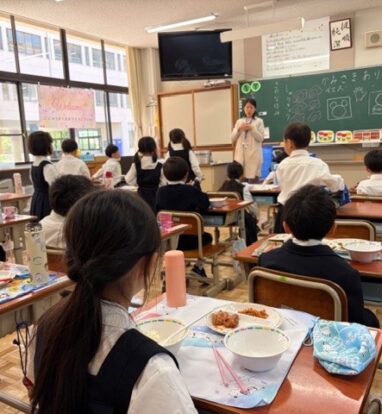 今日は、1年生が初めて学校でお昼をいただきました。みんなでお祈りをしていただきました。外ではたくさんの鳥がさえずっている明るいお昼でした。委員会活動も始まっています。放送委員会のアナウンスの声に、ドキドキしながら、一生けんめい伝えようとする気持ちがみえます。