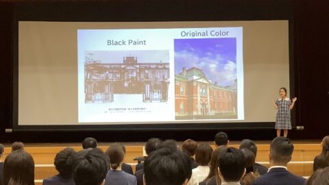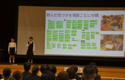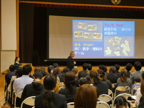保護者の方には、本校の2つのコース「総合フロンティアコース」「国際コース」の説明と両コース児童のプレゼンなどをきいていただきました。