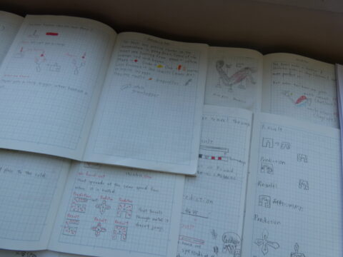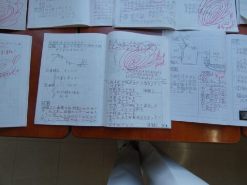 授業の後は、廊下の「学習コーナー」へ。 ノートや作文、英語のジャーナルなどを熱心に見入る保護者様の姿が多く見られました。「数年後には、うちの子もこんな風に…」と、日々の学びの積み重ねを少しでもイメージしていただけたなら幸いです。