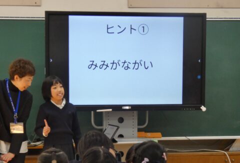 授業の最後には、出来たクイズをみんなの前で発表してくれました。
