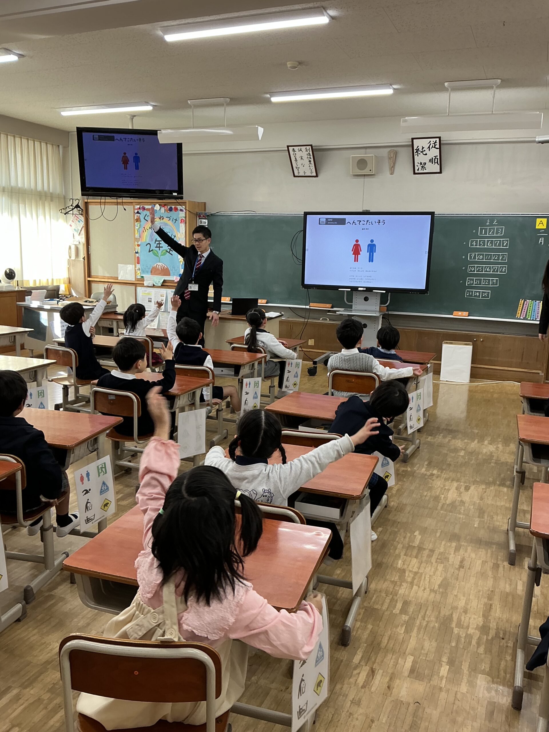 一方、テストを終えた年中さんはリラックスタイム!先生と一緒に「へんてこ体操」で体を動かしました。机に向かっていた時の緊張もどこへやら、教室は子どもたちの弾けるような笑顔と明るい声でいっぱいになりました。