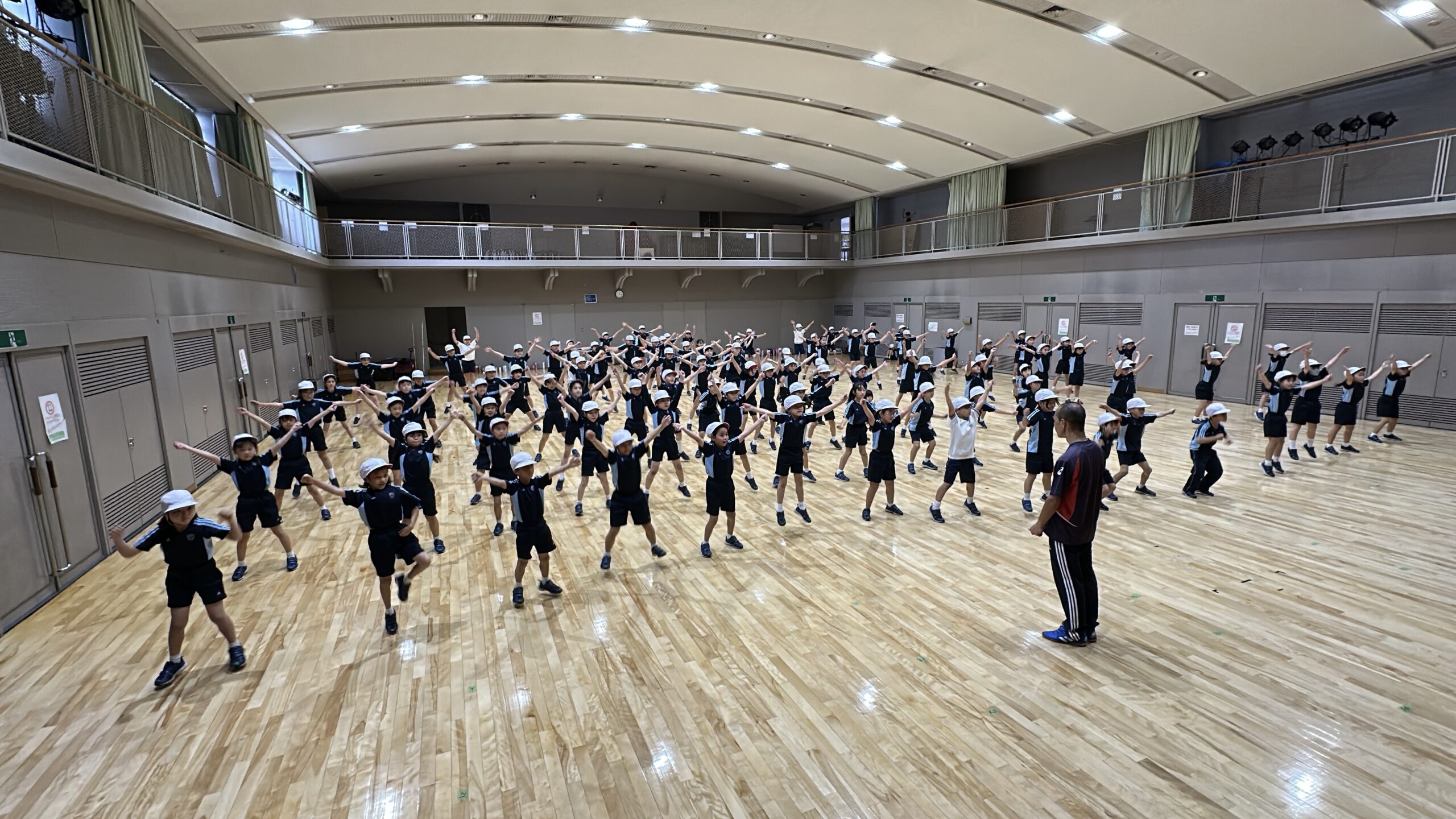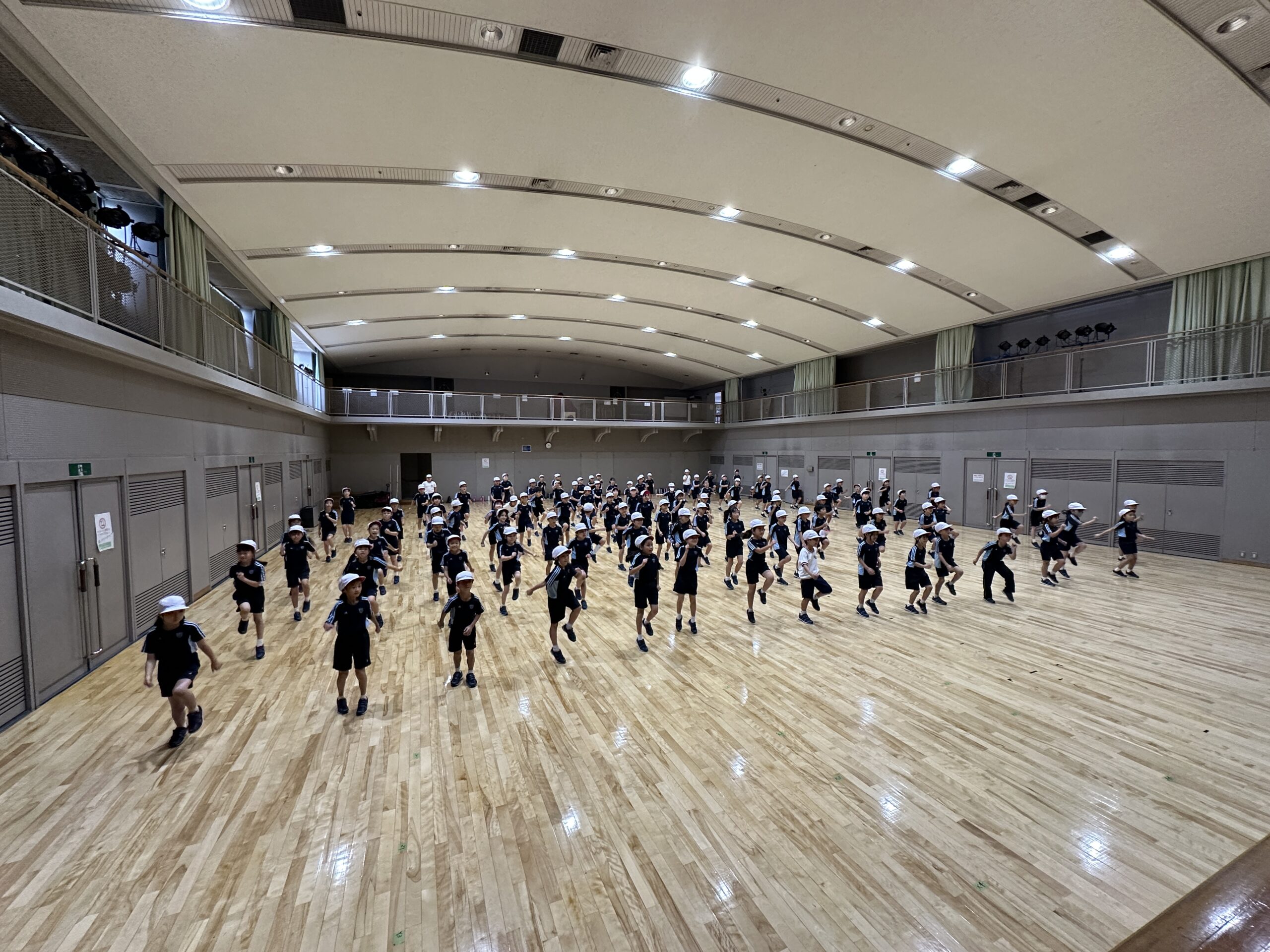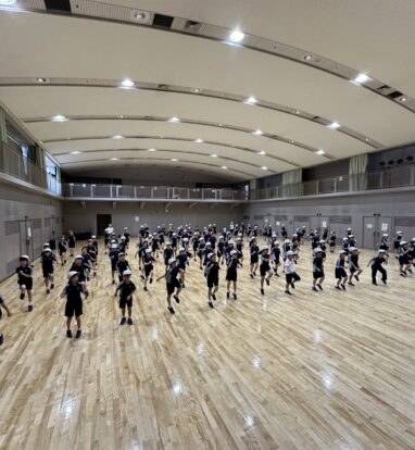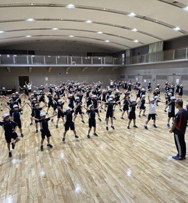 その後は、みんなお待ちかねのダンスの練習です。ダンスで使う曲や可愛い&カッコいいダンスに大興奮です。子どもたちは難しい動きもあっという間に覚えて、とても楽しんで練習していました。教室に帰ってからも、練習する姿も見られ、これから素晴らしい団体演技になっていくのが楽しみです。