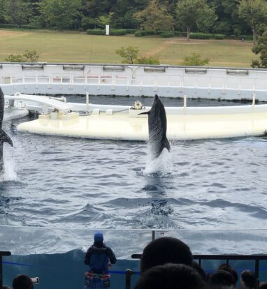 みることができました。イルカとトレーナーさんの息の合ったショーに、大きな歓声が!