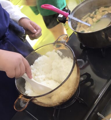 初めてお米を炊く子どもがほとんどで、それもお鍋を使っての炊飯です!