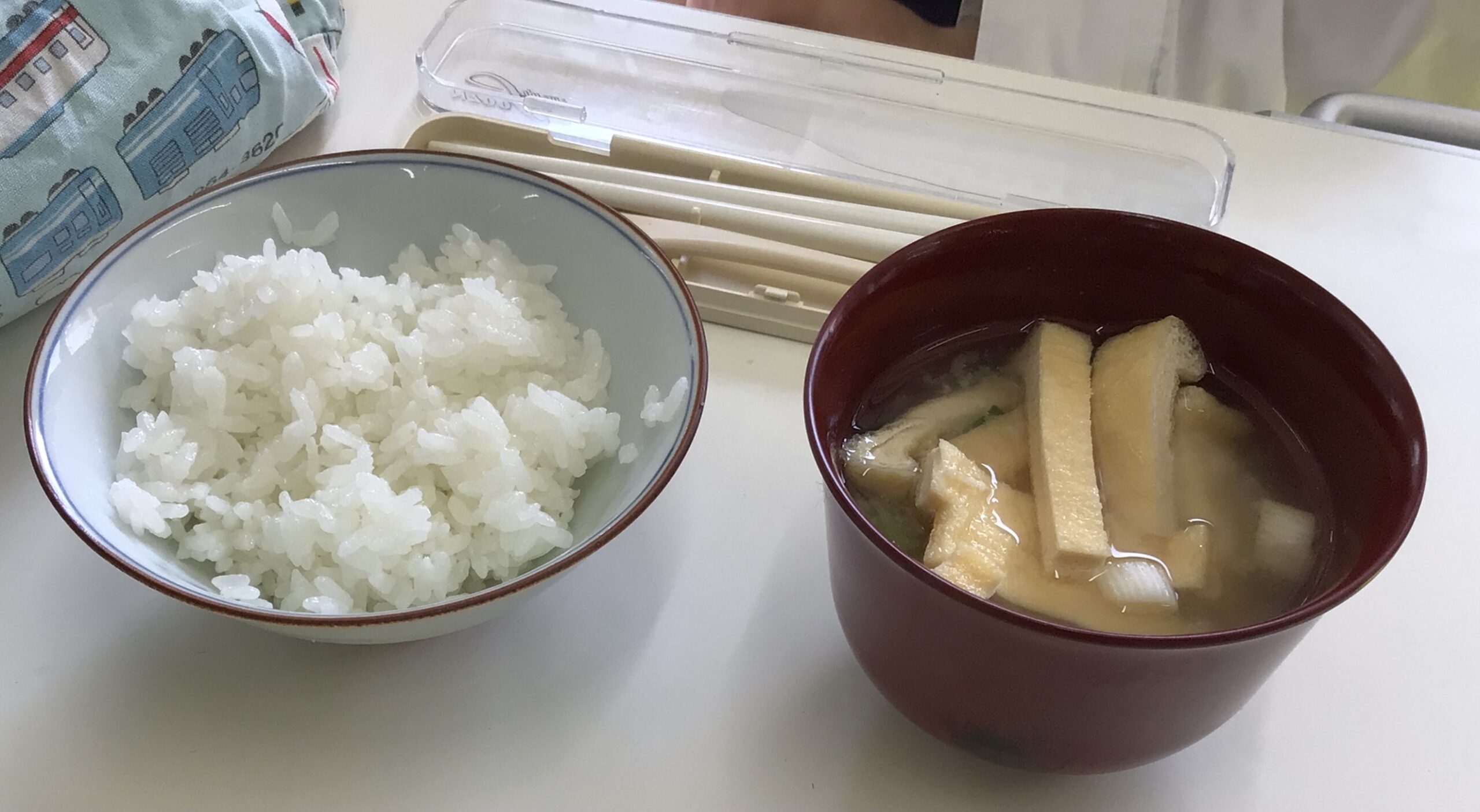 ご飯をよそおう子から、「やったあ!おこげがある!」という声が。