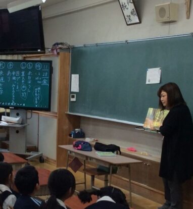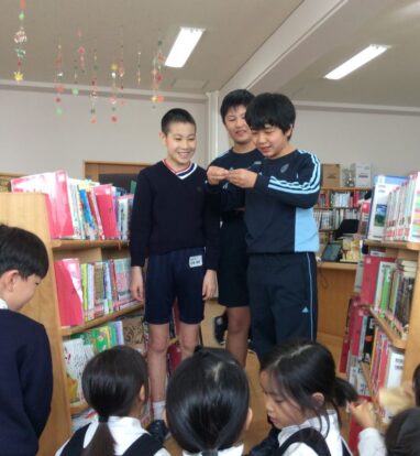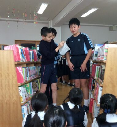 5年生図書委員による読み聞かせ、紙芝居『ばけくらべ』。