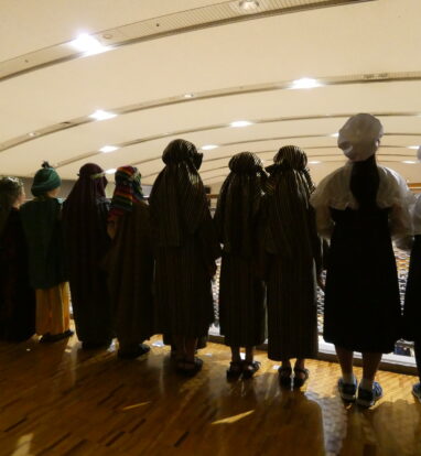 合唱団と宗教委員は、緊張しながらも祈りの心を込めて聖劇を演じました。