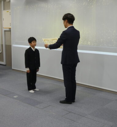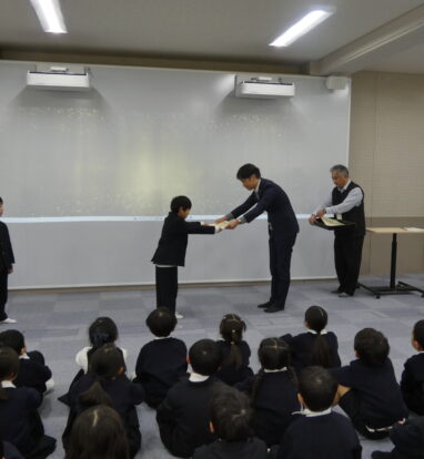 ファミリーマートが主催する「ありがとうの手紙コンテスト」に応募した、本校の3年生と1年生の2名が最優秀作品賞を受賞しました。主催者が来校され、立派な授賞式を催していただけました。