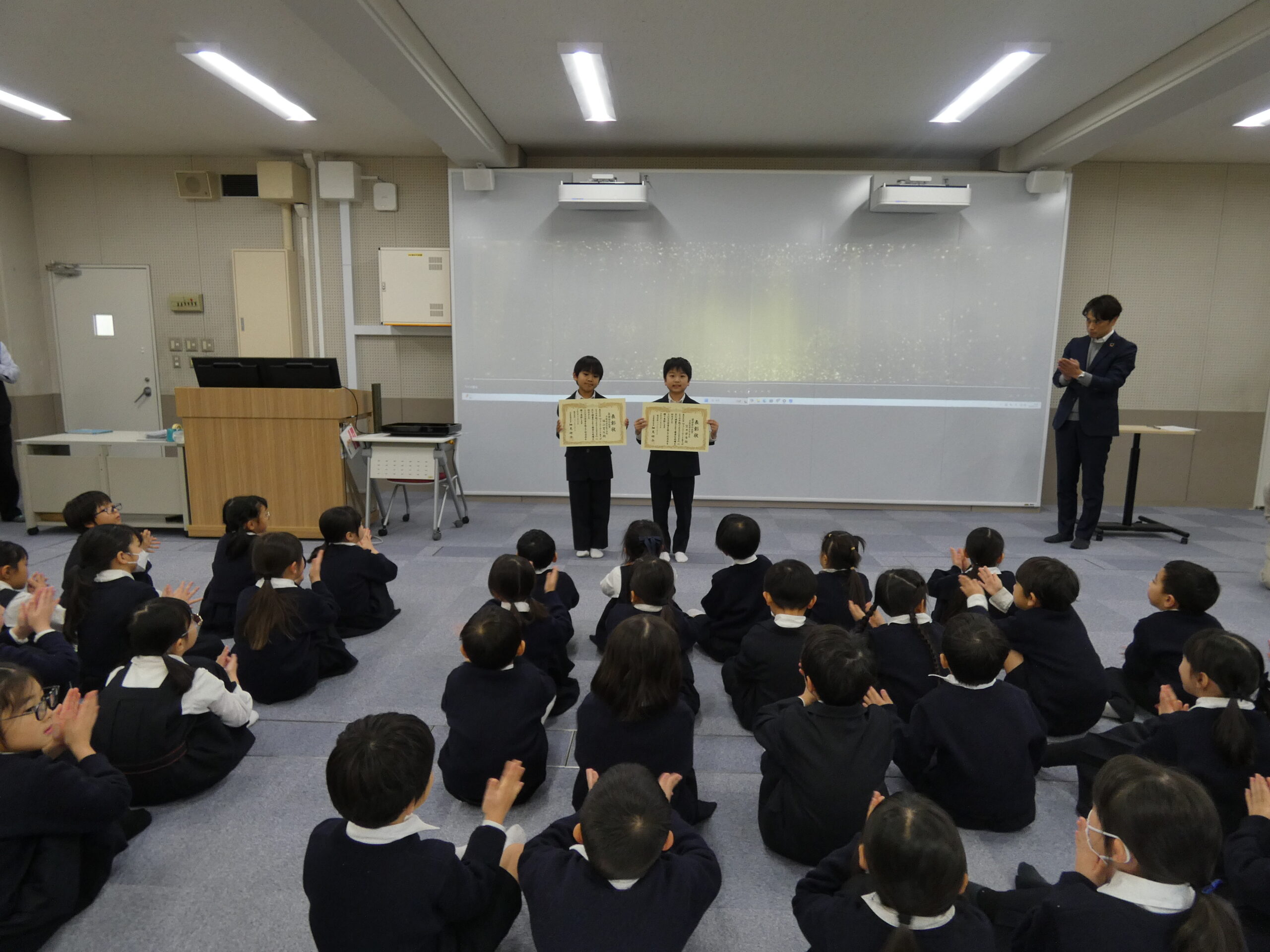 クラスのみんなにも見守られ、受賞した2人はとても嬉しそうでした。