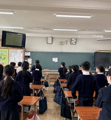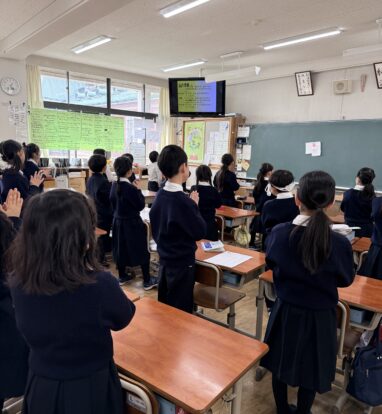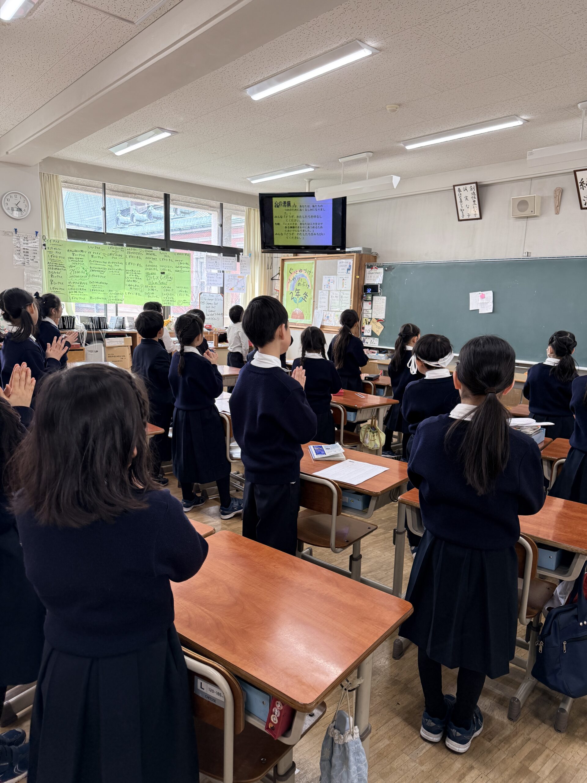 京都聖母学院小学校の私たちも、素直な心をもって「人々のこころをつなぐ平和の天使」になれるよう心をこめてお祈りをしました。