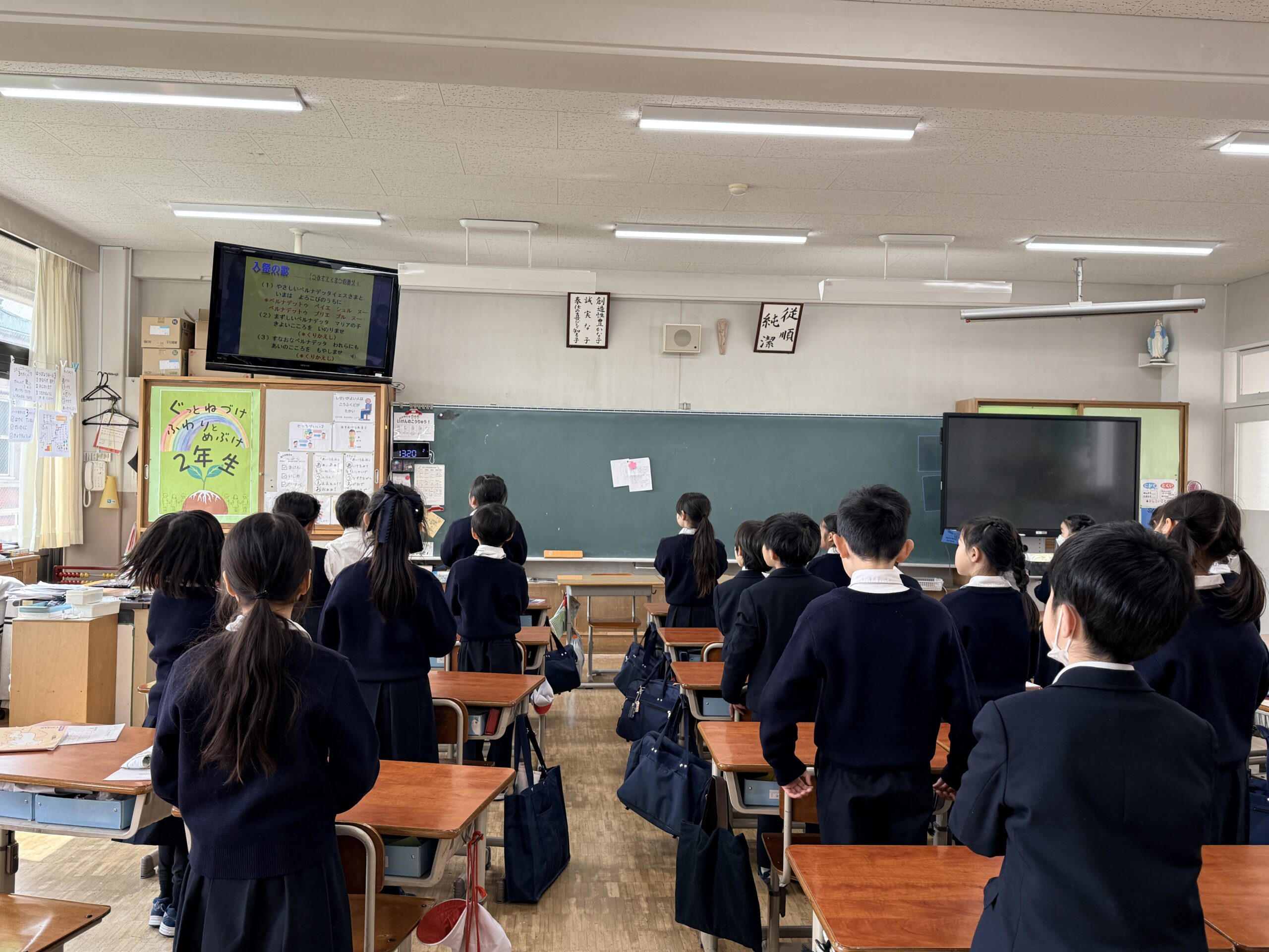 そんなベルナデッタの姿をお手本とし、どんな時も素直なこころで日々を過ごすことができるよう、皆で聖歌を歌ったり聖書の言葉を聞いたりしながら思いを寄せました。
