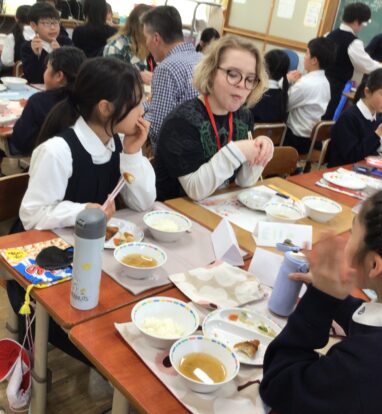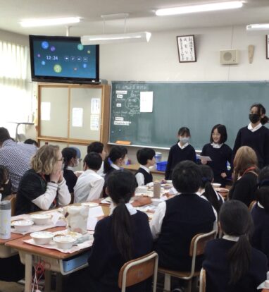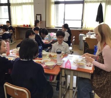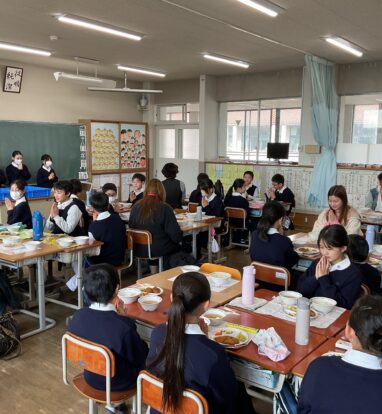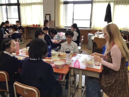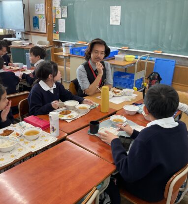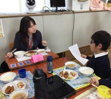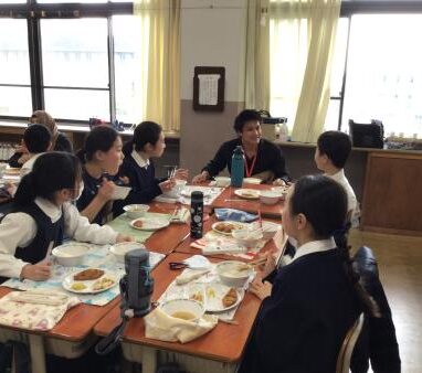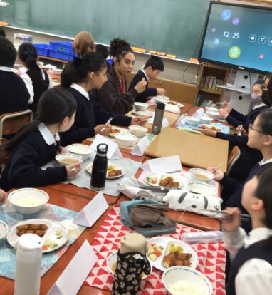 今回は、学生さんと先生方を聖母ランチに招待して、5年生がランチ交流会を